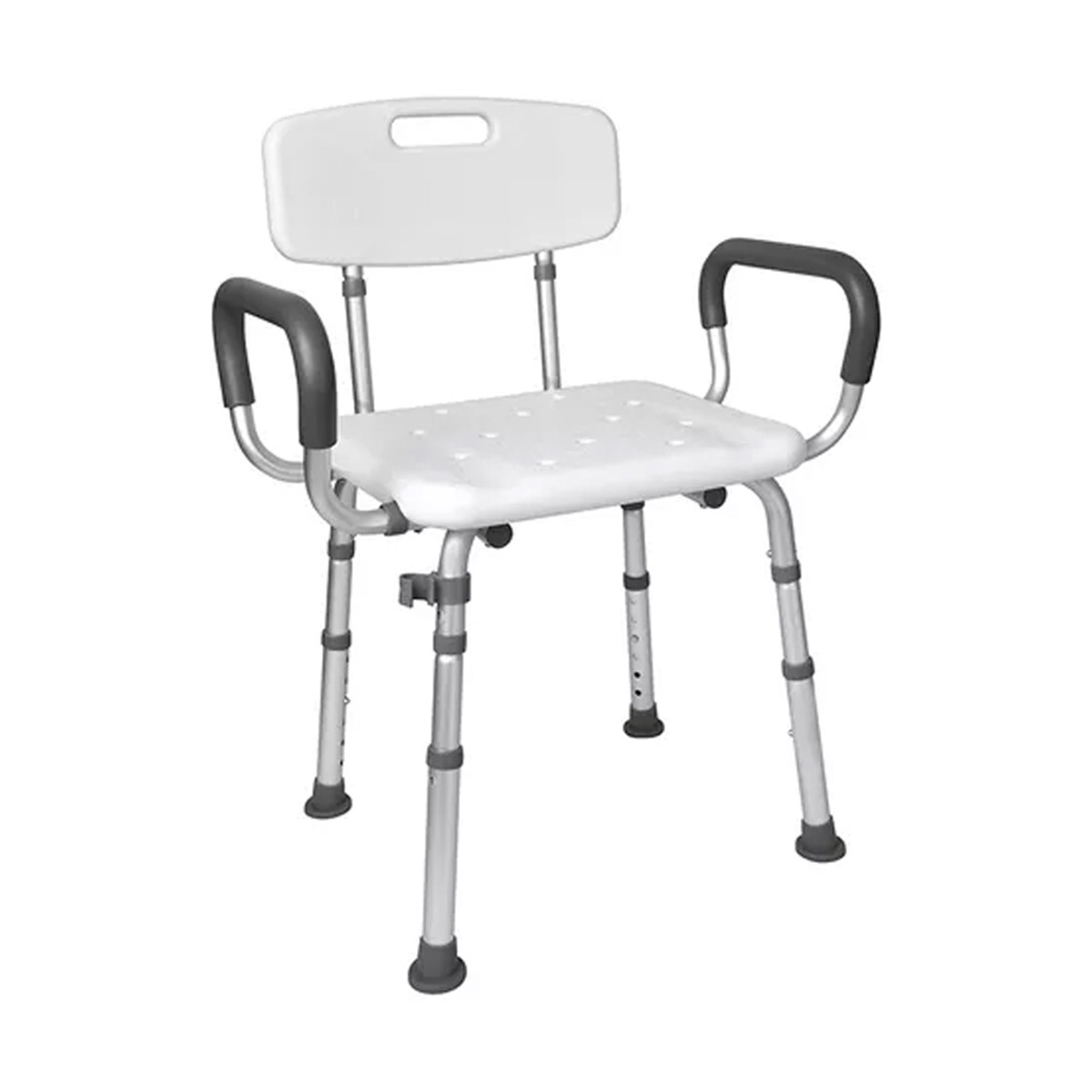01- Unidade de banco para banho com encosto e apoio de braços até 135kg – Mercur.