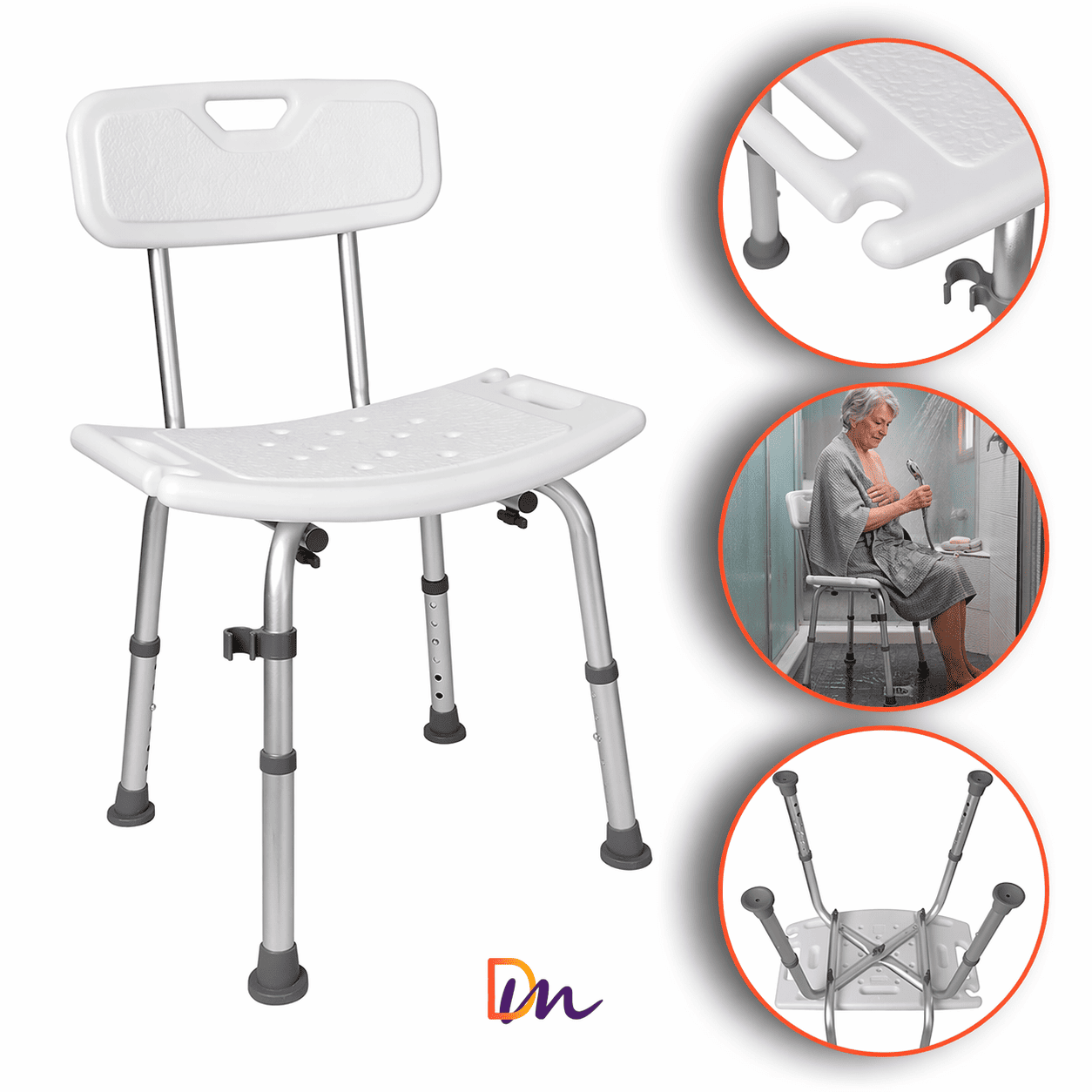 Desenvolvido para oferecer suporte durante o banho a pessoas com dificuldades de equilíbrio ou fraqueza muscular, ajudando a reduzir o risco de quedas e outros acidentes.